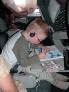 In het vliegtuig proberen we de kinderen bezig te houden. Bram kan niet wachten en tekent alsof zijn leven ervan afhangt, terwijl Koen alvast een klein dutje doet. Eten, drinken, af en toe een oogje dichtdoen… het ritme van de vlucht houdt ons behoorlijk bezig. Net als het geduld bijna op is, zet de landing in.