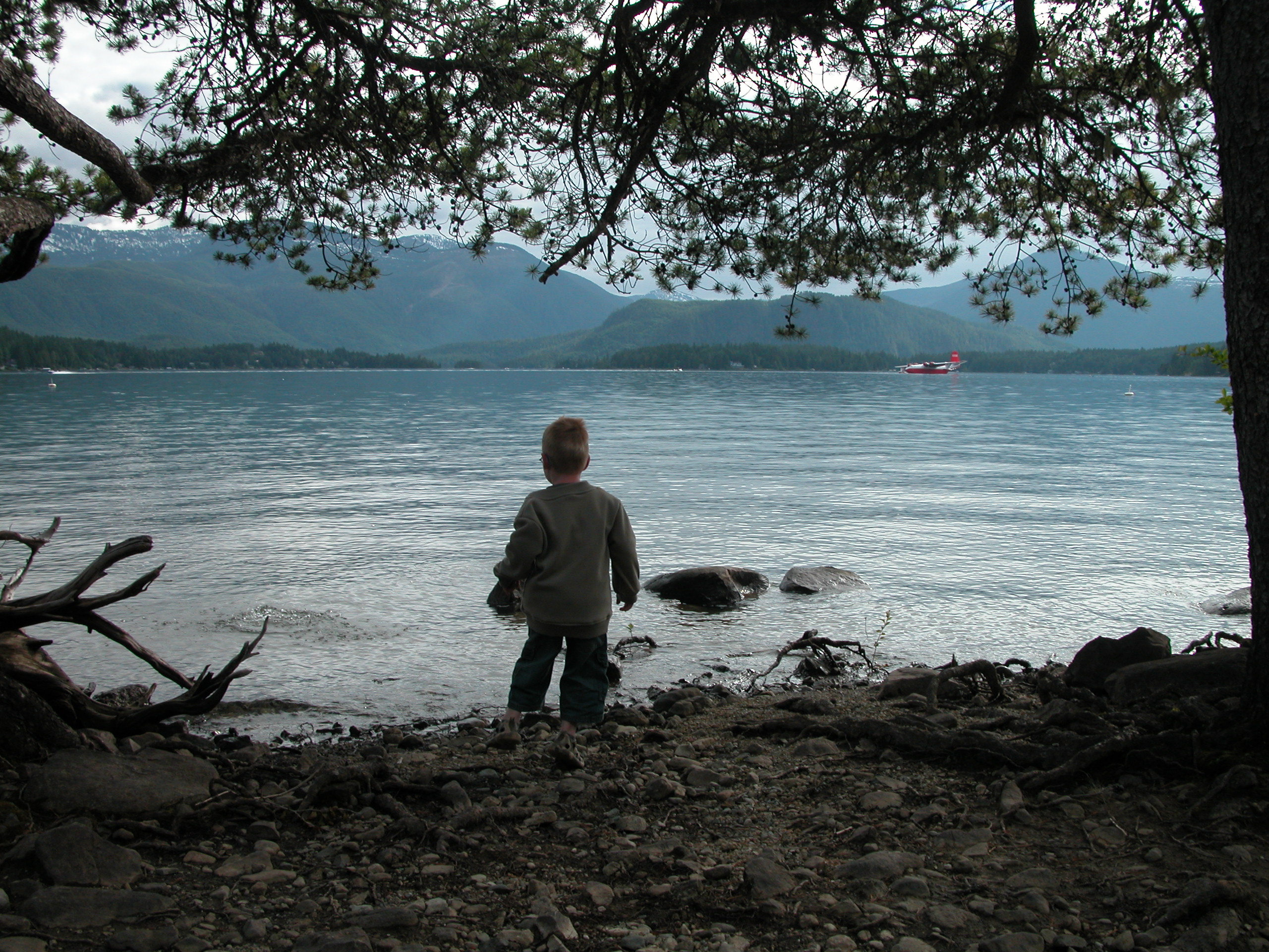 Tijdens de rit door Port Alberni, dat niet heel boeiend is, slapen Bram en Koen diep. Op Sproat Lake Provincial Park hebben we geluk dat we er al rond 15.30 uur zijn; er zijn nog maar een paar plekken vrij vlak bij het meer.