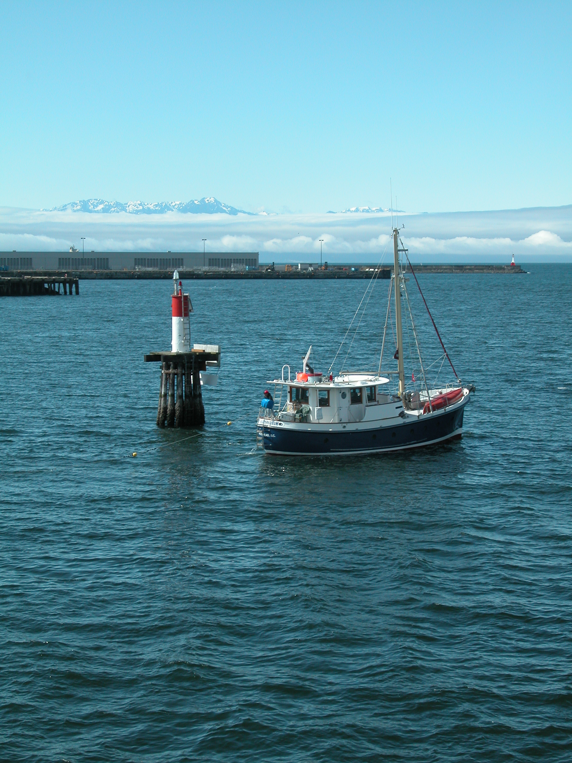 Nog vóór de wekker van 6.30 uur horen we de eerste campers vertrekken. Niet veel later staan we met z’n allen in de rij voor de ferry naar Victoria (Canada).