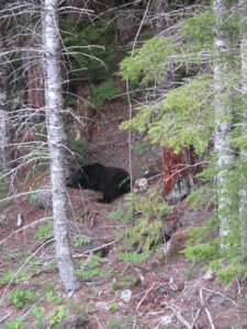We beginnen de dag met een lekker ontbijt van pannenkoeken voordat we de terugweg naar Nanaimo aanvaarden. Het vertrek uit Pacific Rim National Park is een beetje hobbelig, want de weg is wederom steil en bochtig. Gelukkig wordt het landschap wat vlakker als we langs Lake Kennedy rijden. Halverwege de rit zien we een zwarte beer die rustig tussen de bomen ligt – wat een geluk! We stoppen voor een paar foto’s en bewonderen het dier van een veilige afstand.
